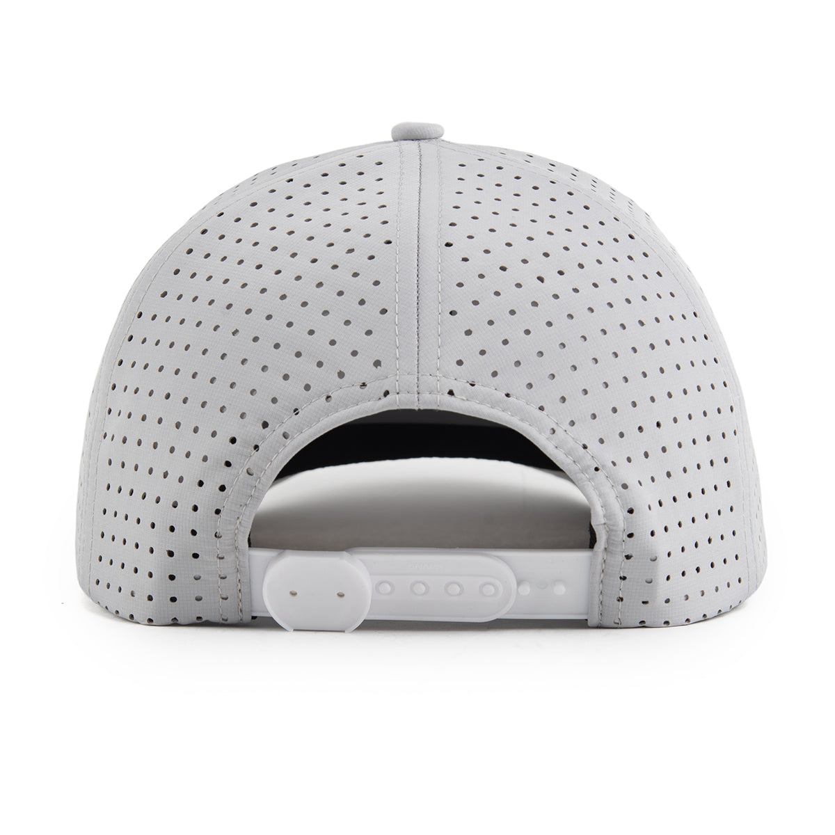 Perforated gray cap with a logo on a white background